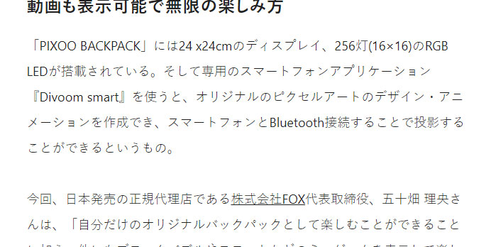 通勤中からパーティまで、好きなイメージを背中に! LEDバックパック「PIXOO BACKPACK」