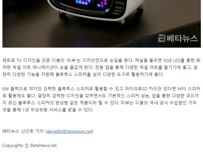 레트로 TV를 닮은 픽셀아트 블루투스 스피커, 디붐 ‘티부’