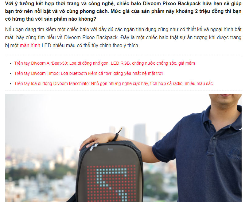 Trên tay balo Divoom Pixoo: Balo màn hình LED, giá hơn 2 triệu bạn có muốn sở hữu không?