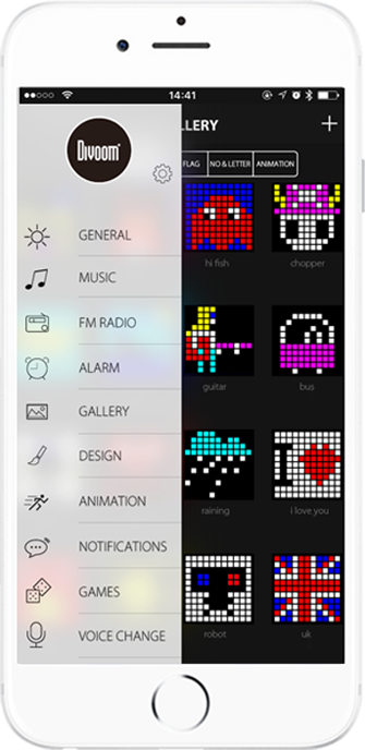 * Advanced mobile app, built-in thermometer, social notification system and more; the TimeBox is the most advance smart clock by Divoom.